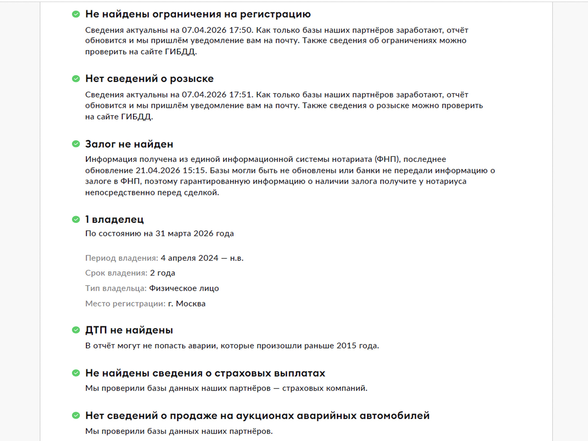 • автомобиль прошёл тщательную диагностику по 160 пунктам — все системы в норме (подробности расскажут наши специалисты);