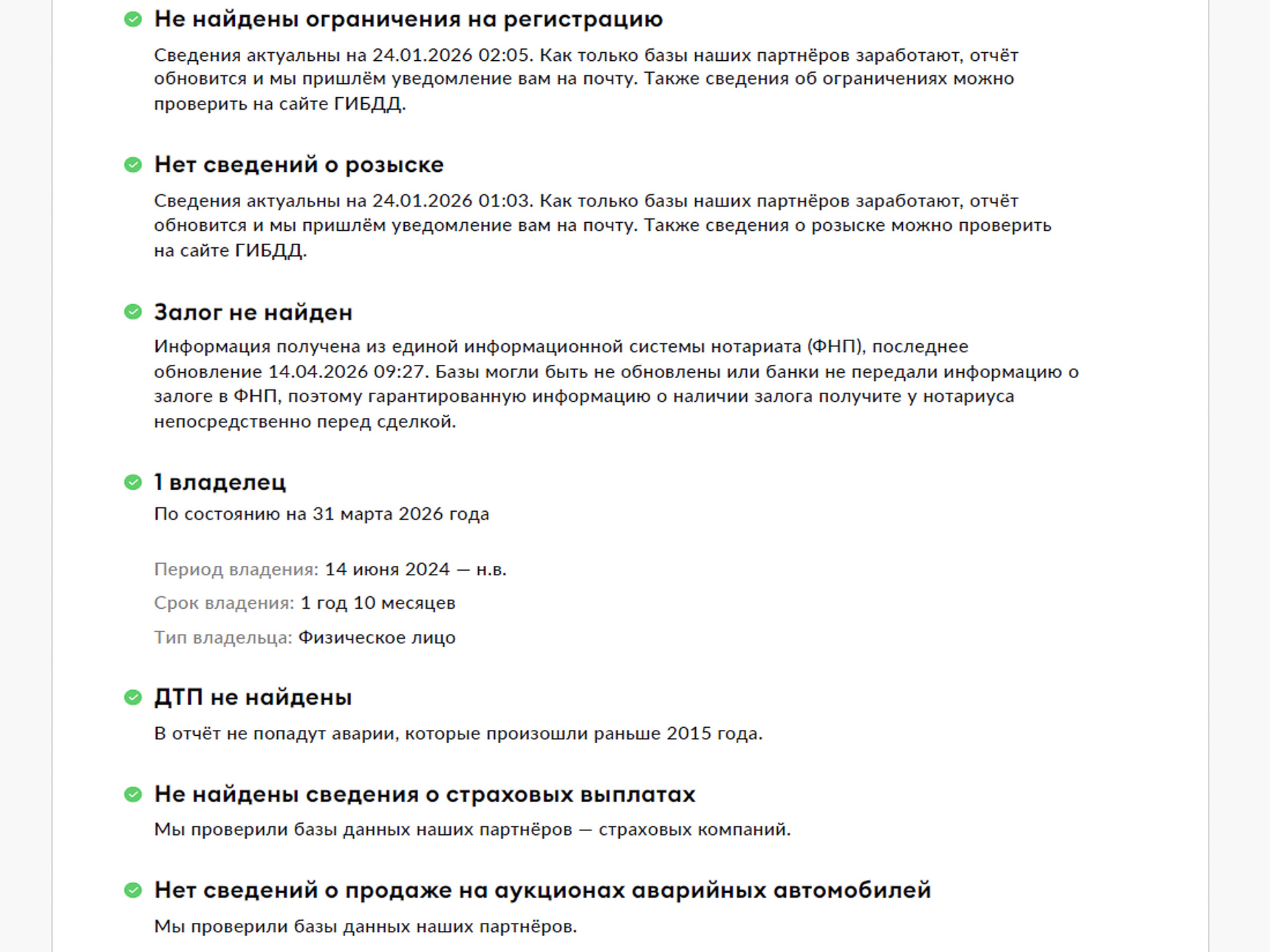 • полная 160 пунктовая диагностика (подробные результаты — у наших специалистов);