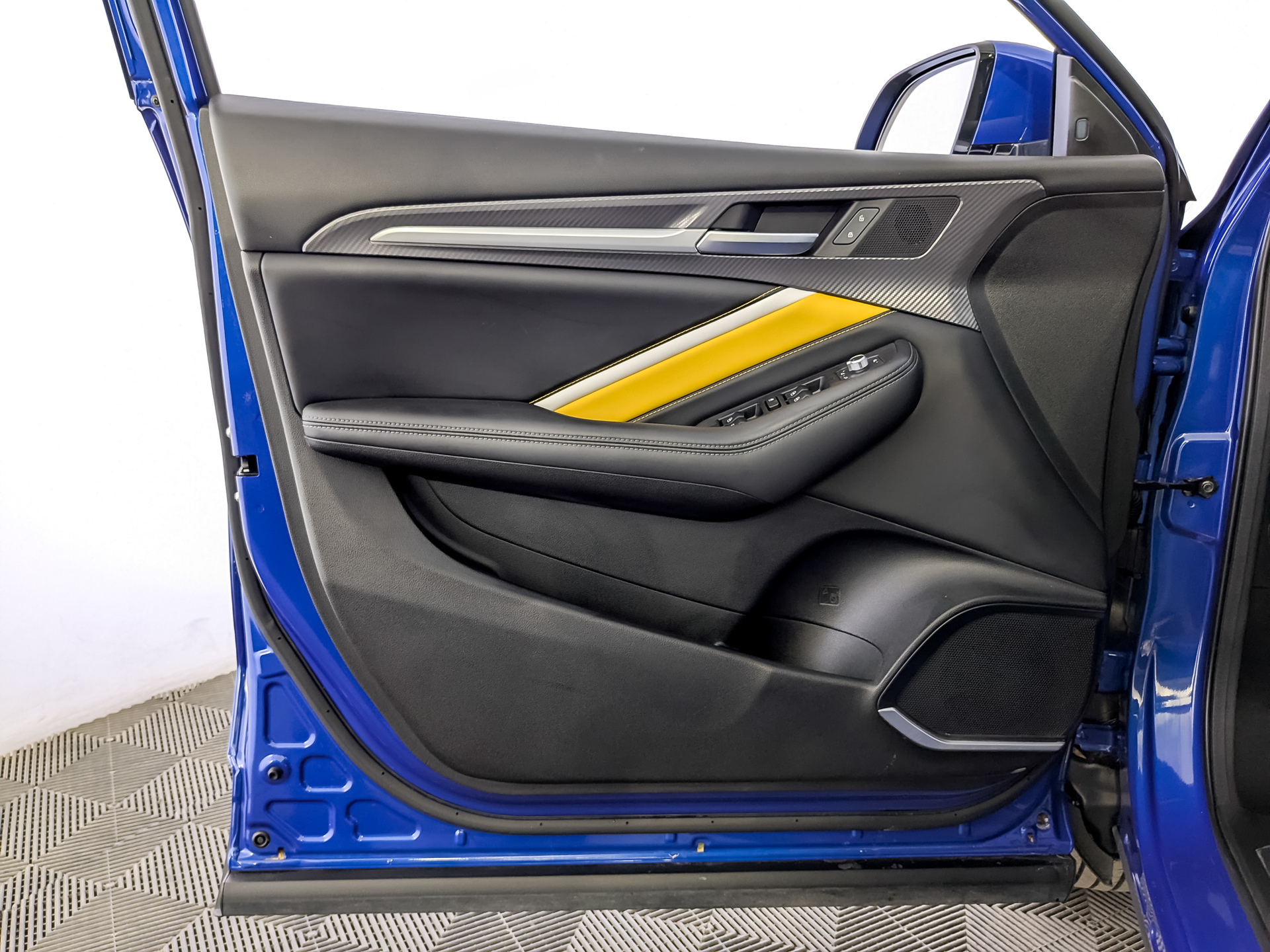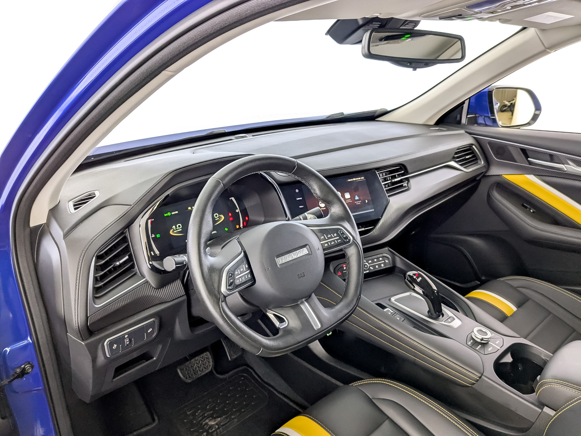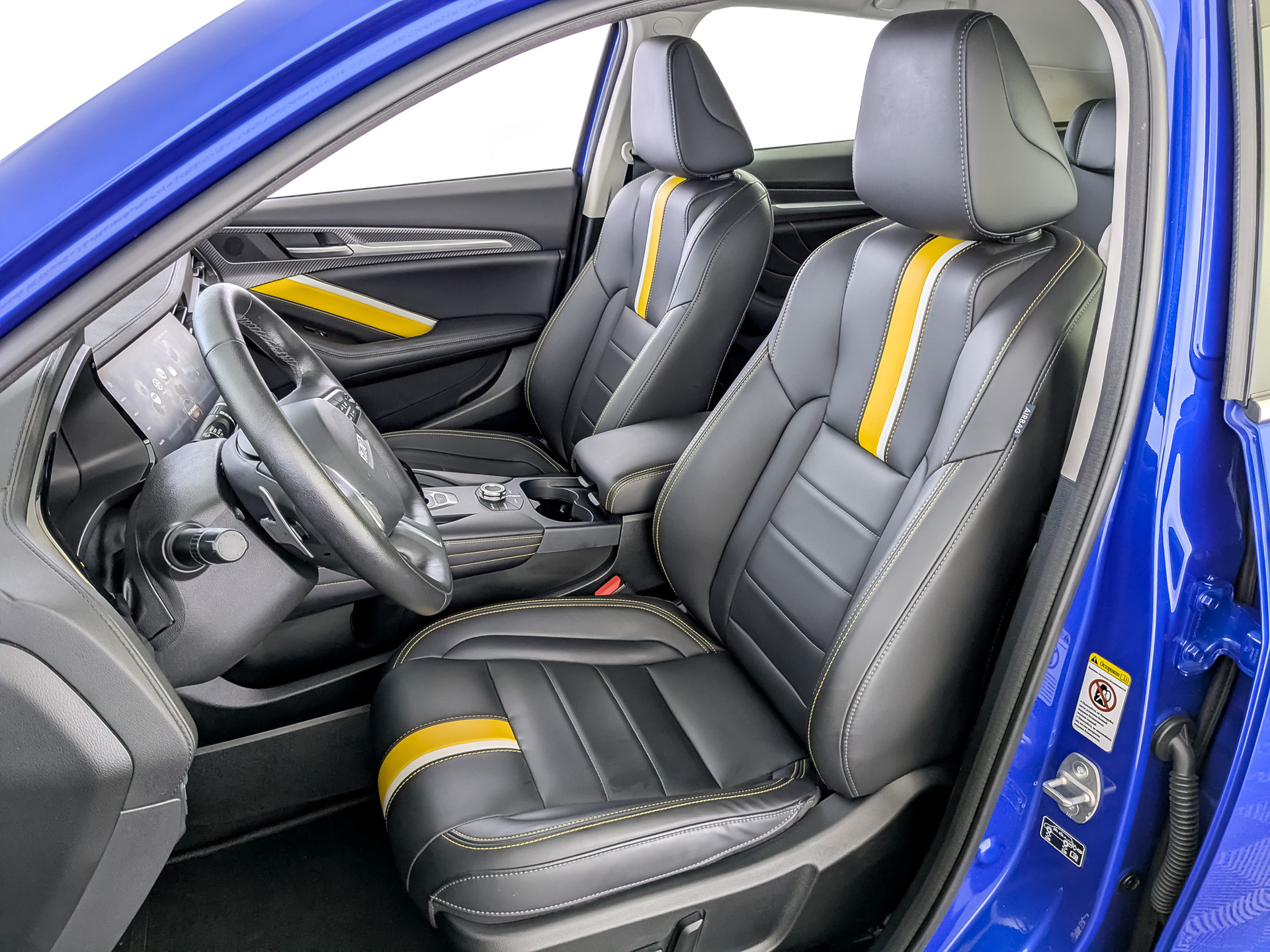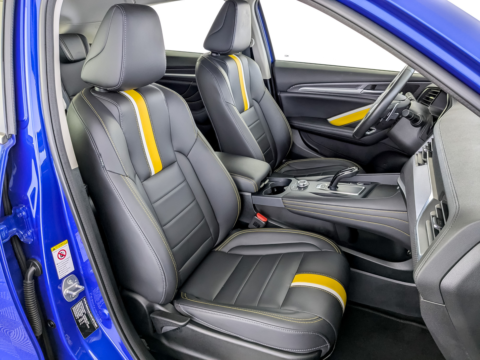 Сиденья с отделкой искусственной кожей с вставкой желтого цвета