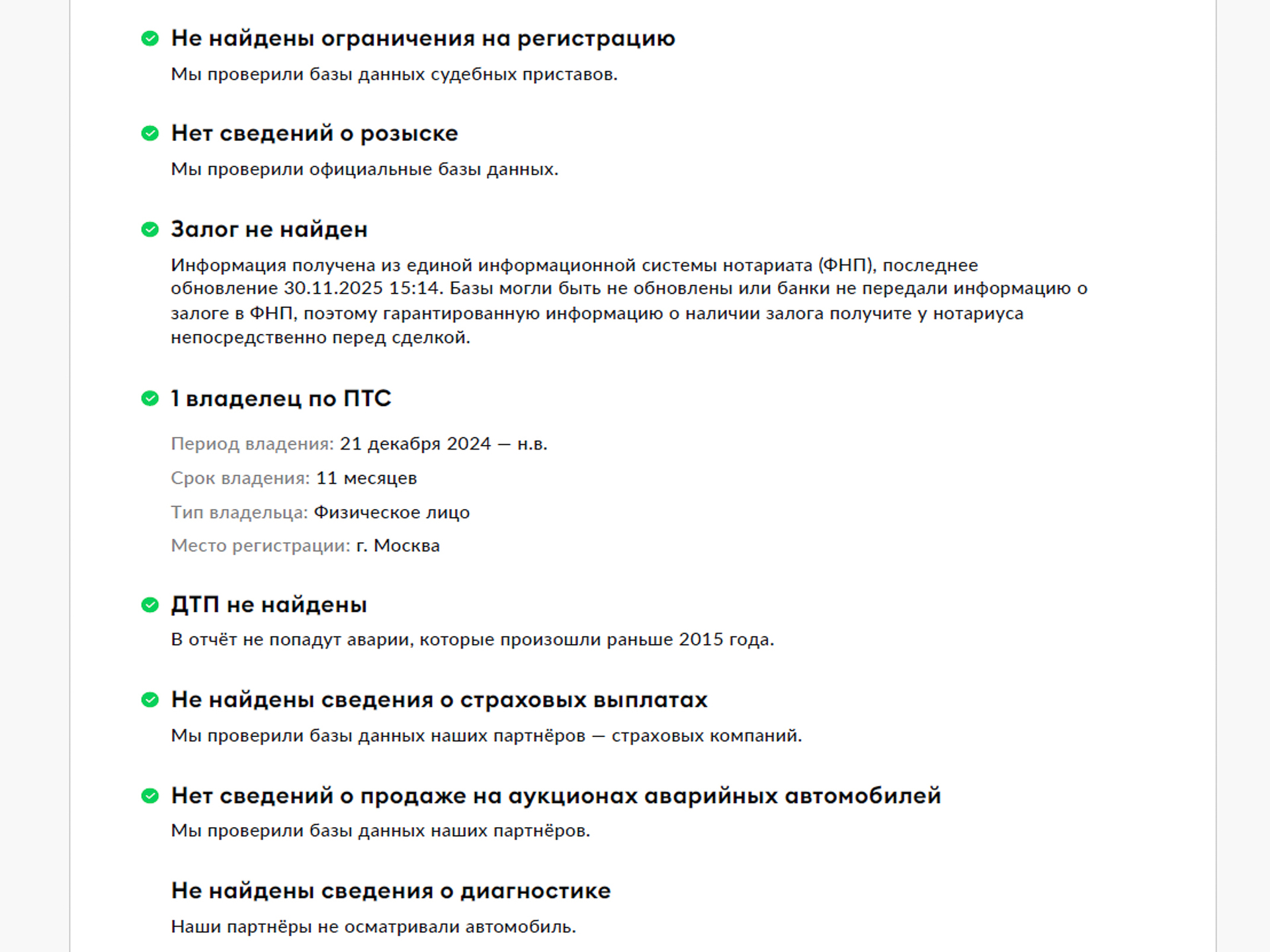 Комплексная диагностика, проведенная по 160 пунктам. Для получения информации о результатах диагностики вы можете обратиться к нашим специалистам.