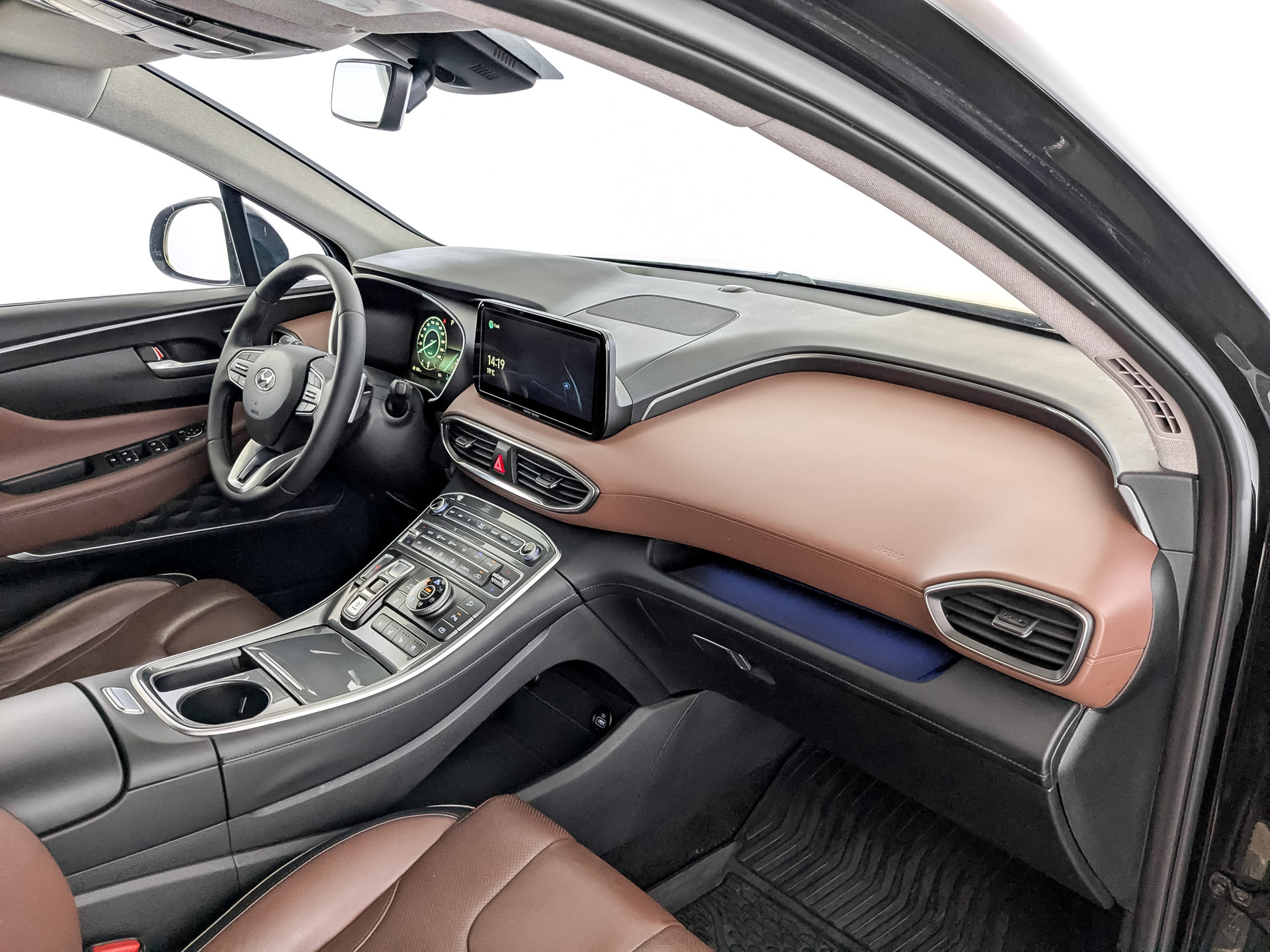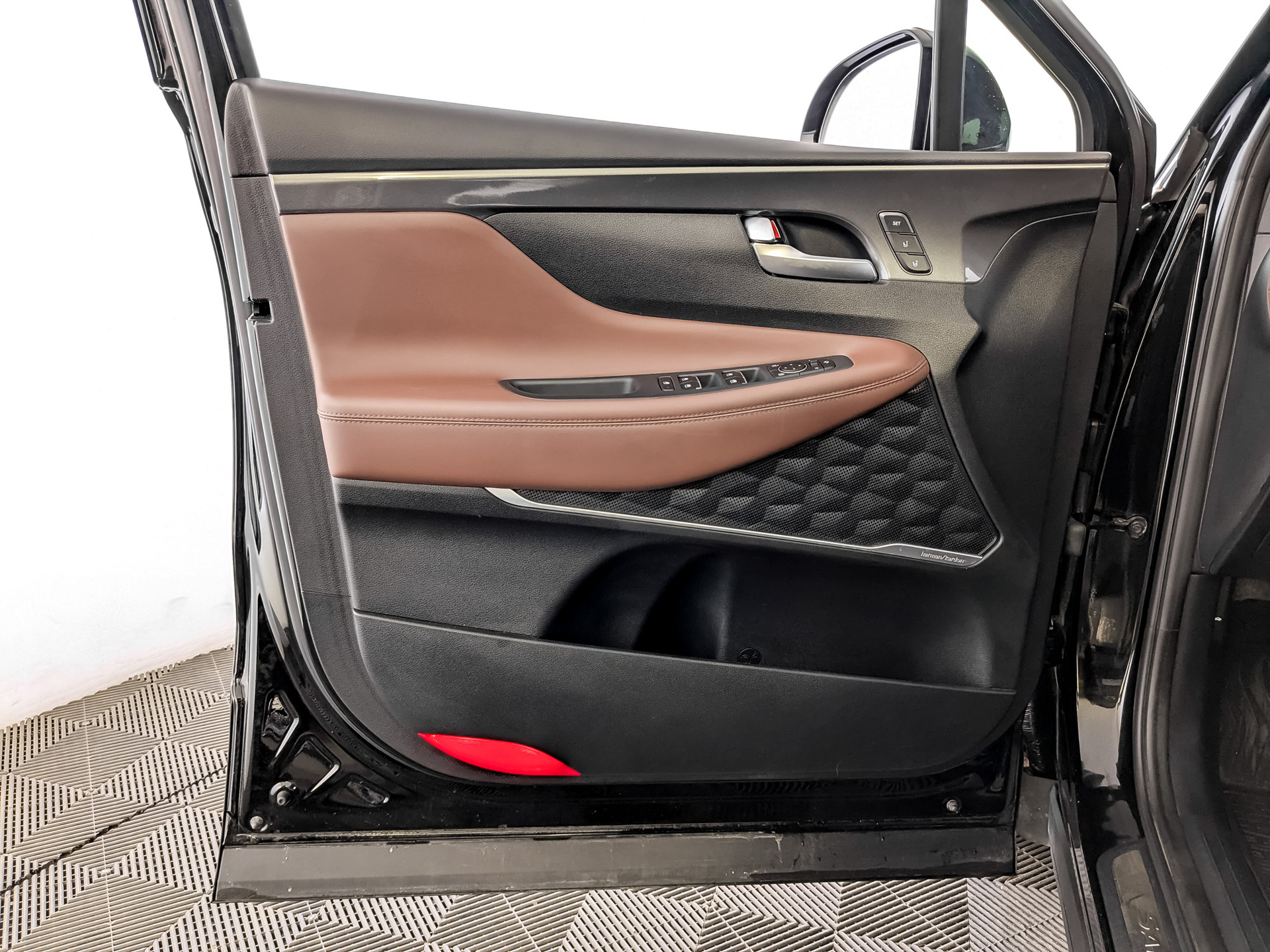 Логотипы "Santa Fe" в подсветке околодверного пространства
