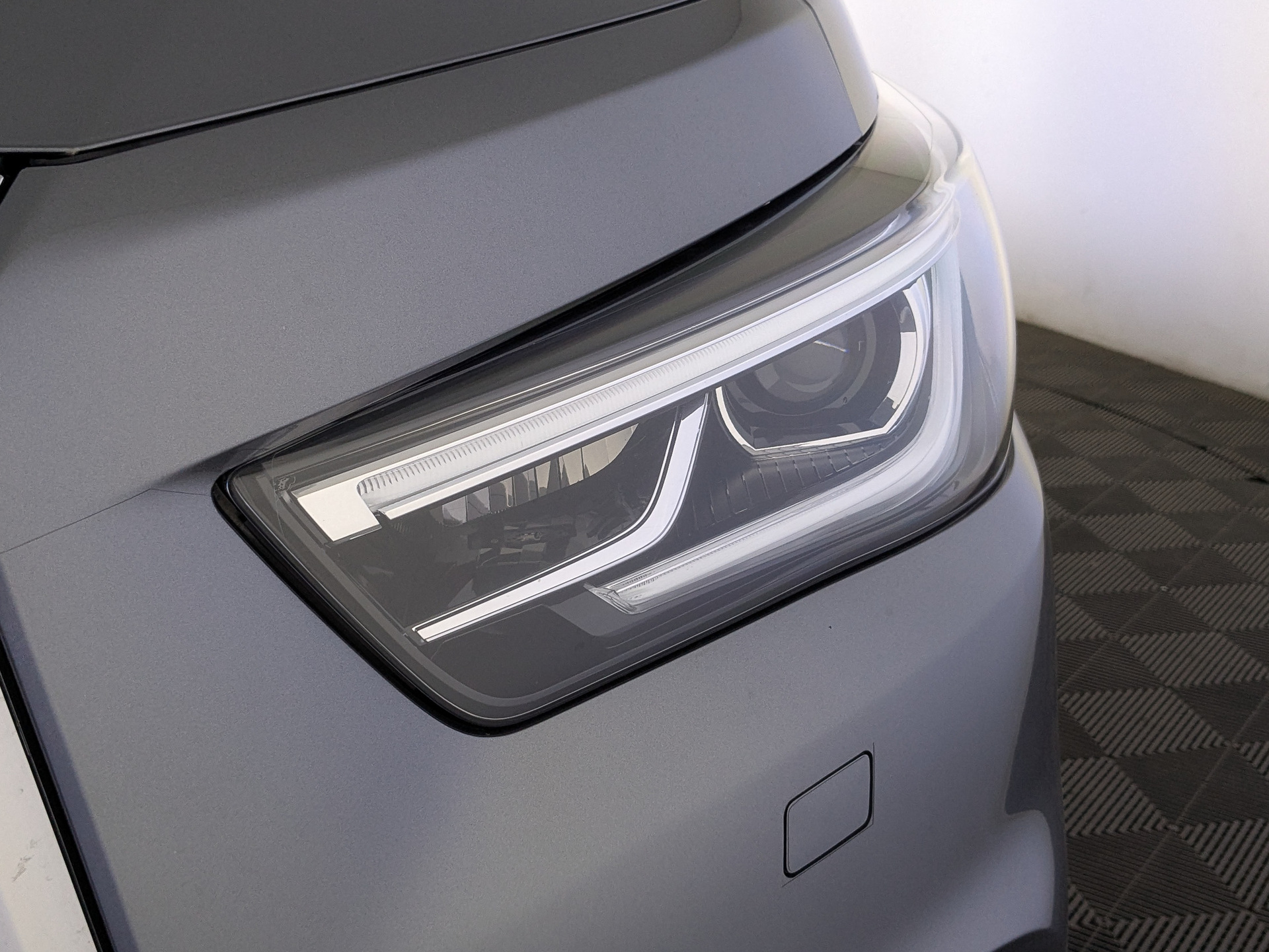 Наши эксперты кузовного цеха внимательно проверили состояние лакокрасочного покрытия и подтвердили отсутствие дефектов. Во время осмотра у вас будет возможность лично убедиться в этом, используя предоставленный специальный прибор для измерения толщины ЛКП. Передняя часть авто в защитной пленке.