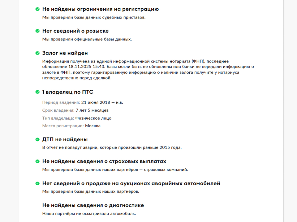 Наши эксперты кузовного цеха внимательно проверили состояние лакокрасочного покрытия и подтвердили отсутствие дефектов. Во время осмотра у вас будет возможность лично убедиться в этом, используя предоставленный специальный прибор для измерения толщины ЛКП.