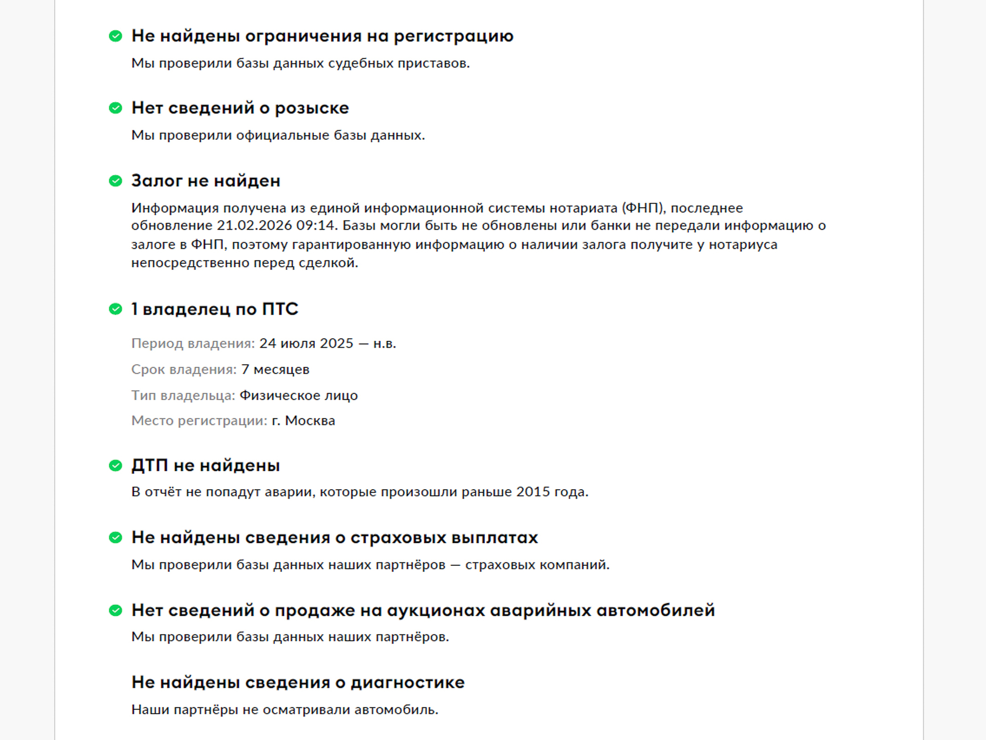 Специалисты кузовного цеха тщательно проверили состояние лакокрасочного покрытия автомобиля и пришли к выводу, что дефектов не обнаружено. Во время осмотра вы сможете лично убедиться в этом, применив предоставленный нами специальный прибор для измерения толщины ЛКП.