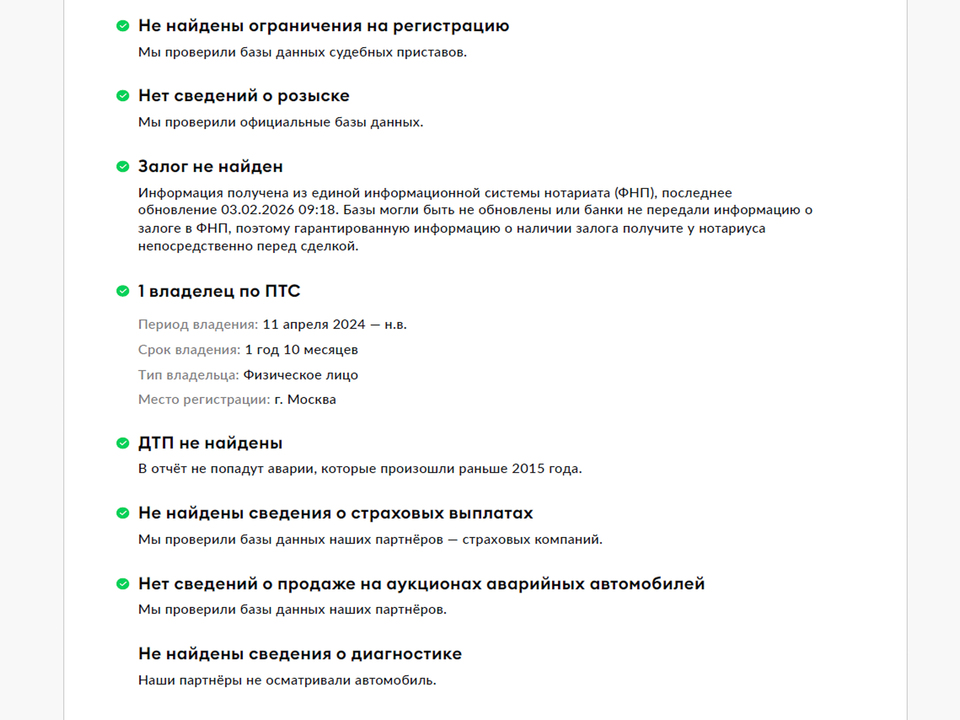 Специалисты кузовного цеха тщательно проверили состояние лакокрасочного покрытия автомобиля и пришли к выводу, что на нём не производилось окрасов и замен кузовных элементов. Во время осмотра вы сможете лично убедиться в этом, применив предоставленный нами специальный прибор для измерения толщины ЛКП.