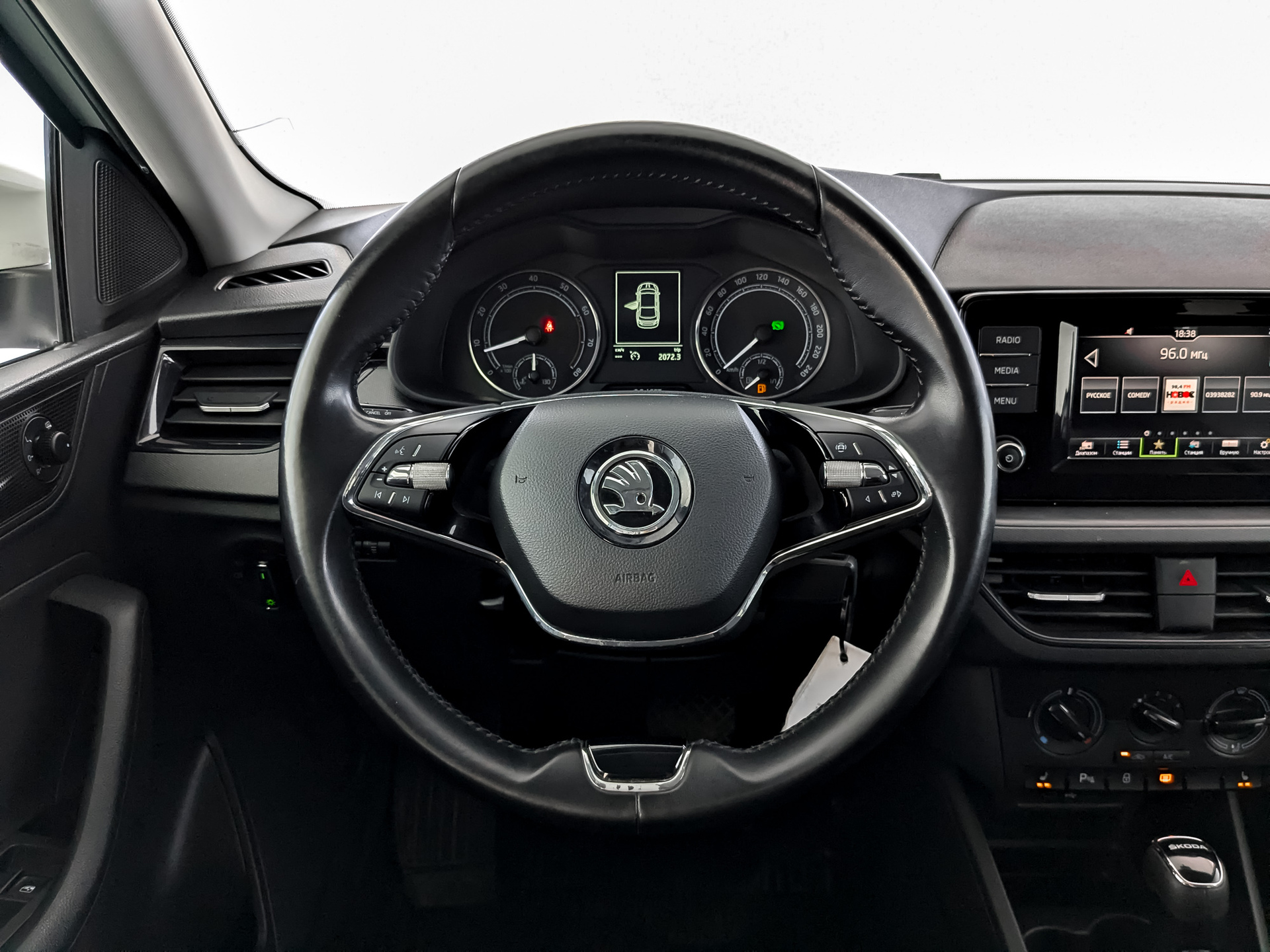 Многофункциональное 2-спицевое кожаное рулевое колесо, кожаный рычаг стояночного тормоза, рычаг КПП со вставкой из кожи, хромированные детали интерьера