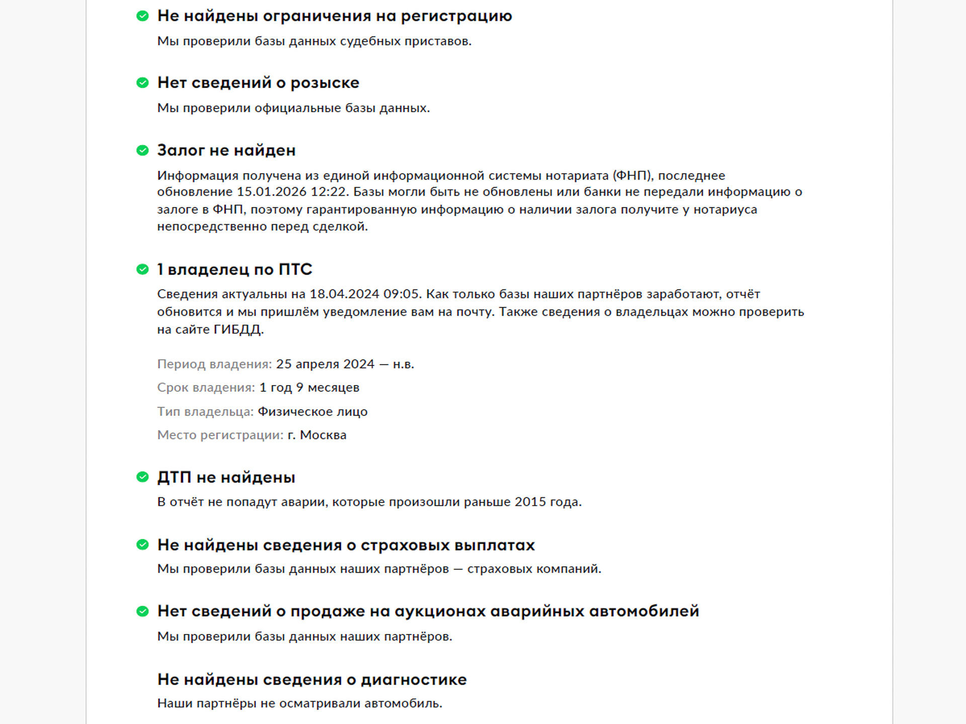 Комплексная диагностика, проведенная по 160 пунктам. Для получения информации о результатах диагностики вы можете обратиться к нашим специалистам.