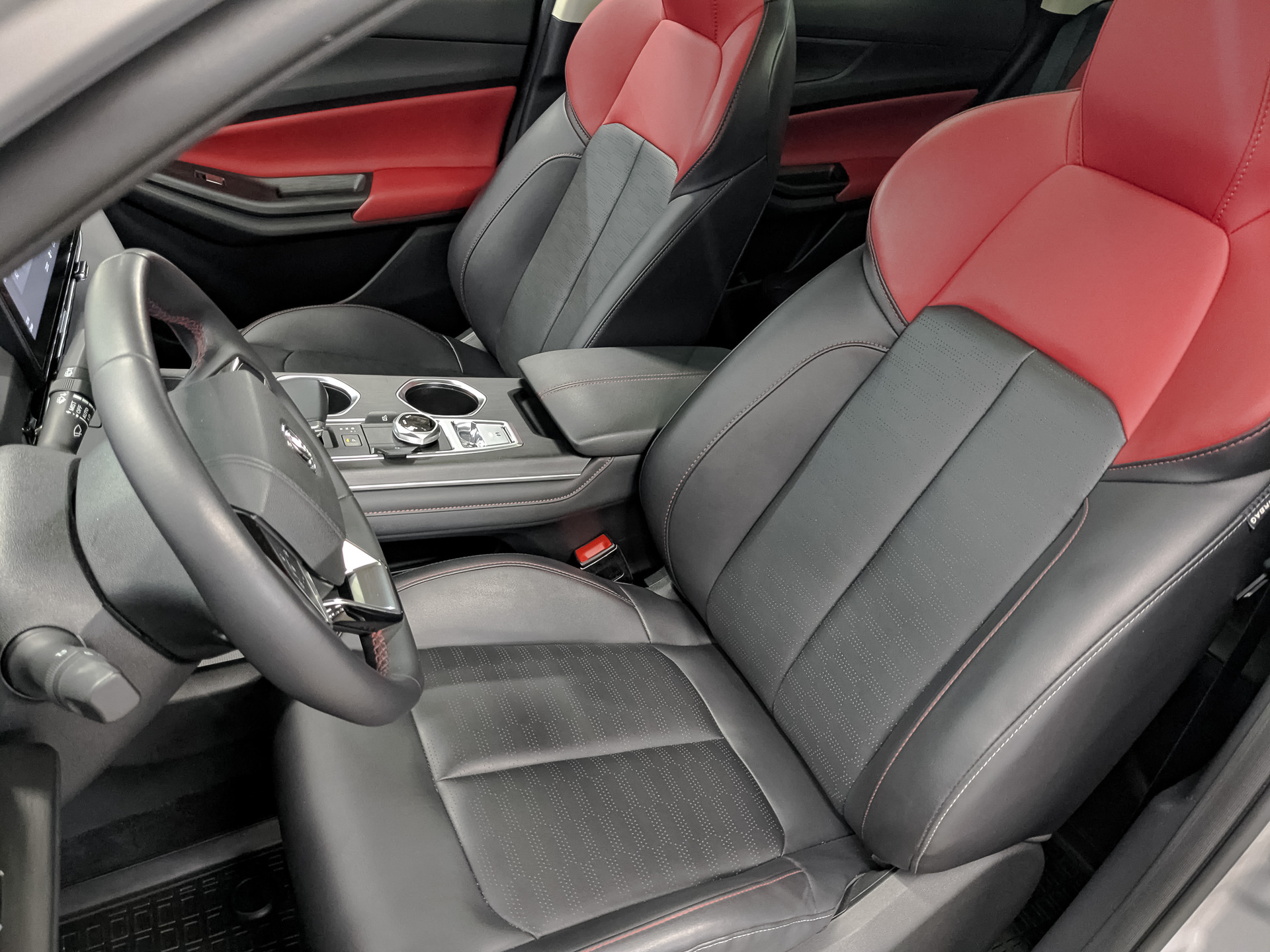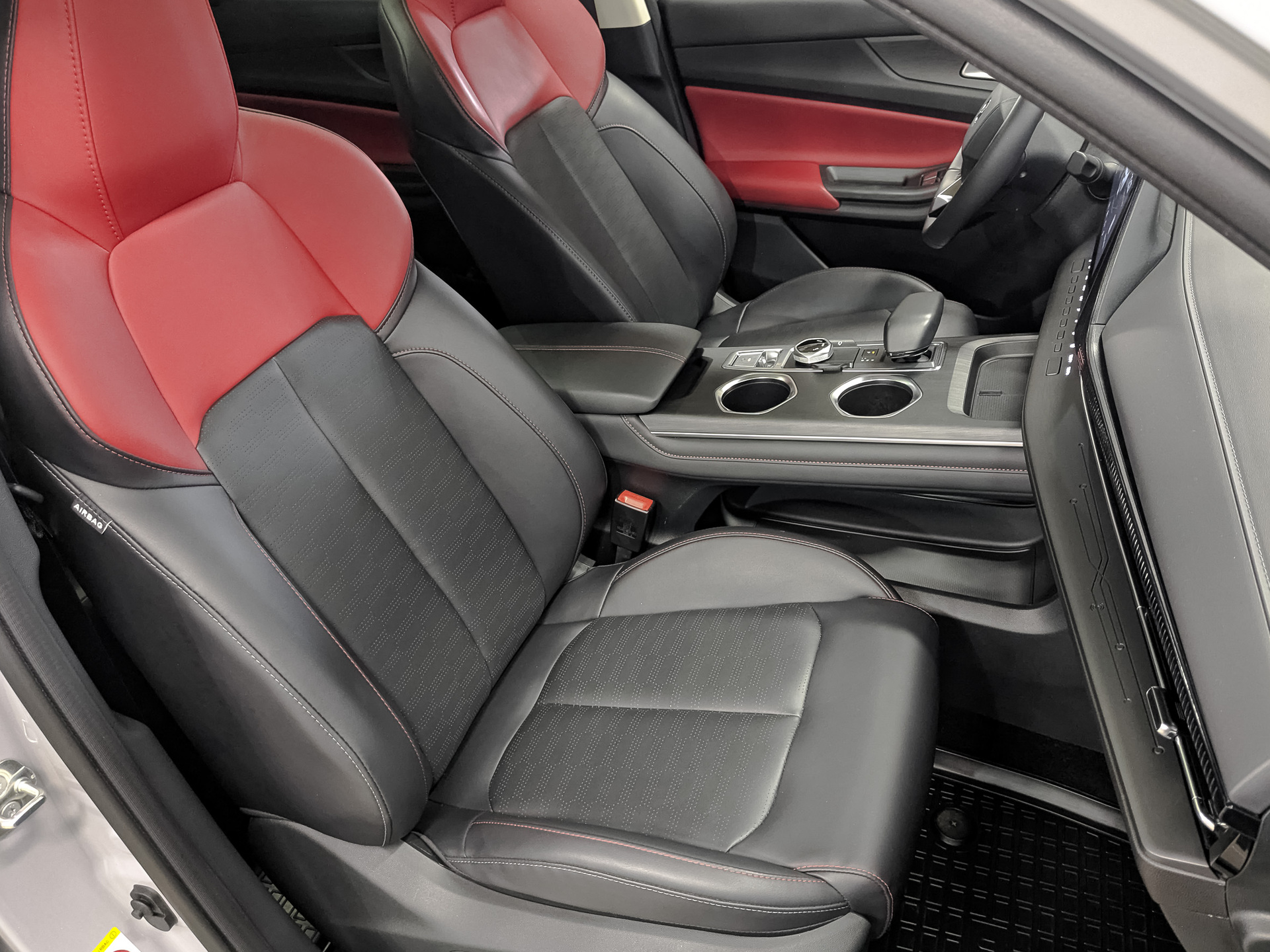 Комбинированная отделка сидений экокожей черный/красный