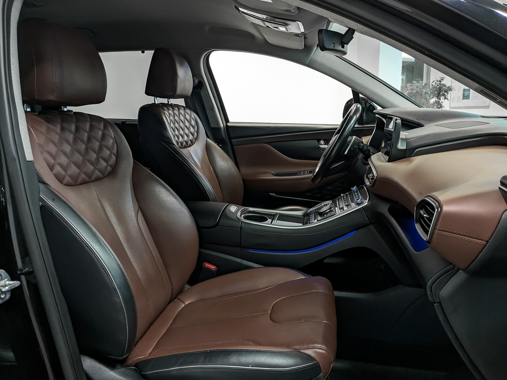 Логотипы "Santa Fe" в подсветке околодверного пространства